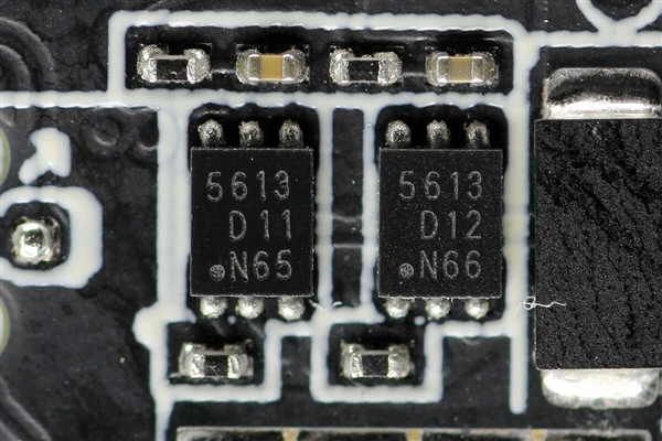 电池保护芯片来自南芯科技,型号SC5613,是单节高精度锂电池保护芯片,通过外置电阻的压降来检测电流,采用DFN6L封装,使用两组芯片进行串联保护。