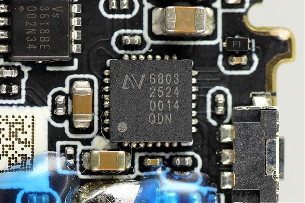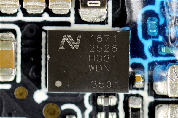 电源管理芯片来自伏达半导体,型号NU6803,是一颗高效同步降压充电芯片,支持19V反向升压输出,并具备三个接口控制。支持4.4-16V输入和4.4-19V输出电压,及完整的锂电池充电管理,兼容PD3.1/PPS和无线充电应用。